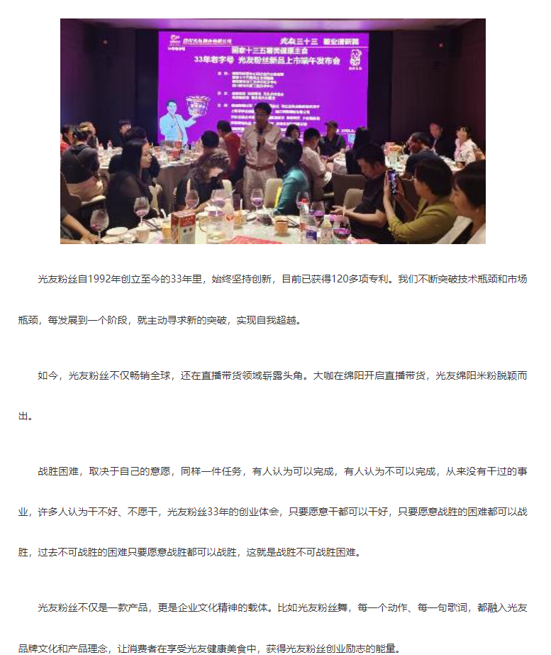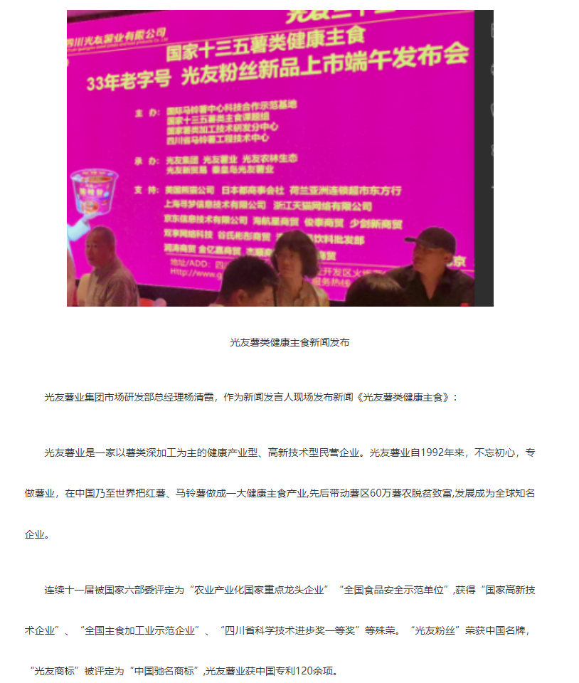轉(zhuǎn)載中華網(wǎng)——光友酸辣粉 光友綿陽米粉低GI薯類健康主食 北京新聞發(fā)布轟動全球