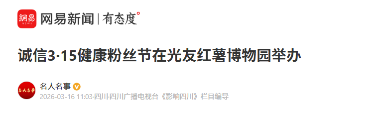 轉(zhuǎn)載網(wǎng)易新聞 誠(chéng)信3·15健康粉絲節(jié)在光友紅薯博物園舉辦